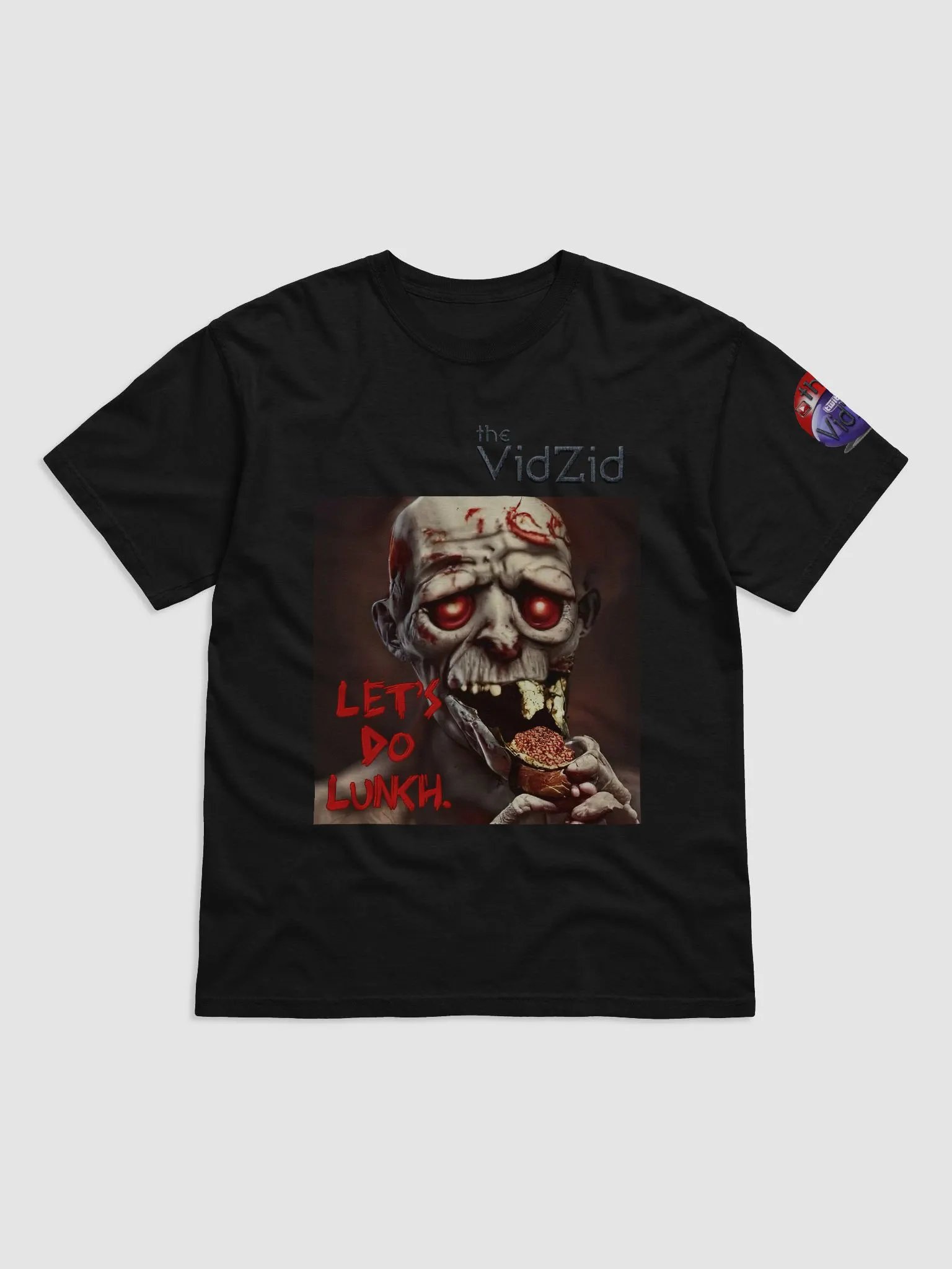 - Branding: The "the VidZid" logo is subtly placed on the upper left chest area, adding a touch of brand identity. Additionally, the right sleeve features a small, colorful patch with further branding, contributing to the shirt's overall unique look.